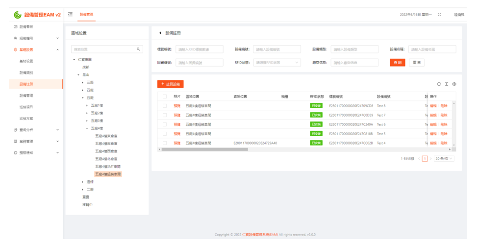APP端確認(rèn)設(shè)備或治具當(dāng)前位置,可手輸更改架位