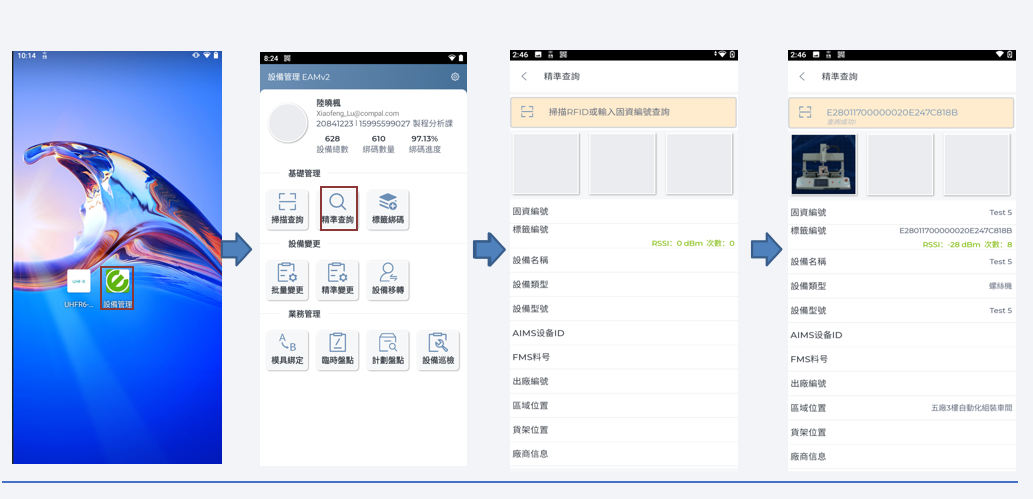 App端可標(biāo)記設(shè)備或治具當(dāng)前狀態(tài)(注冊,測試,生產(chǎn),閑置,報(bào)廢,移轉(zhuǎn),維修,保養(yǎng))